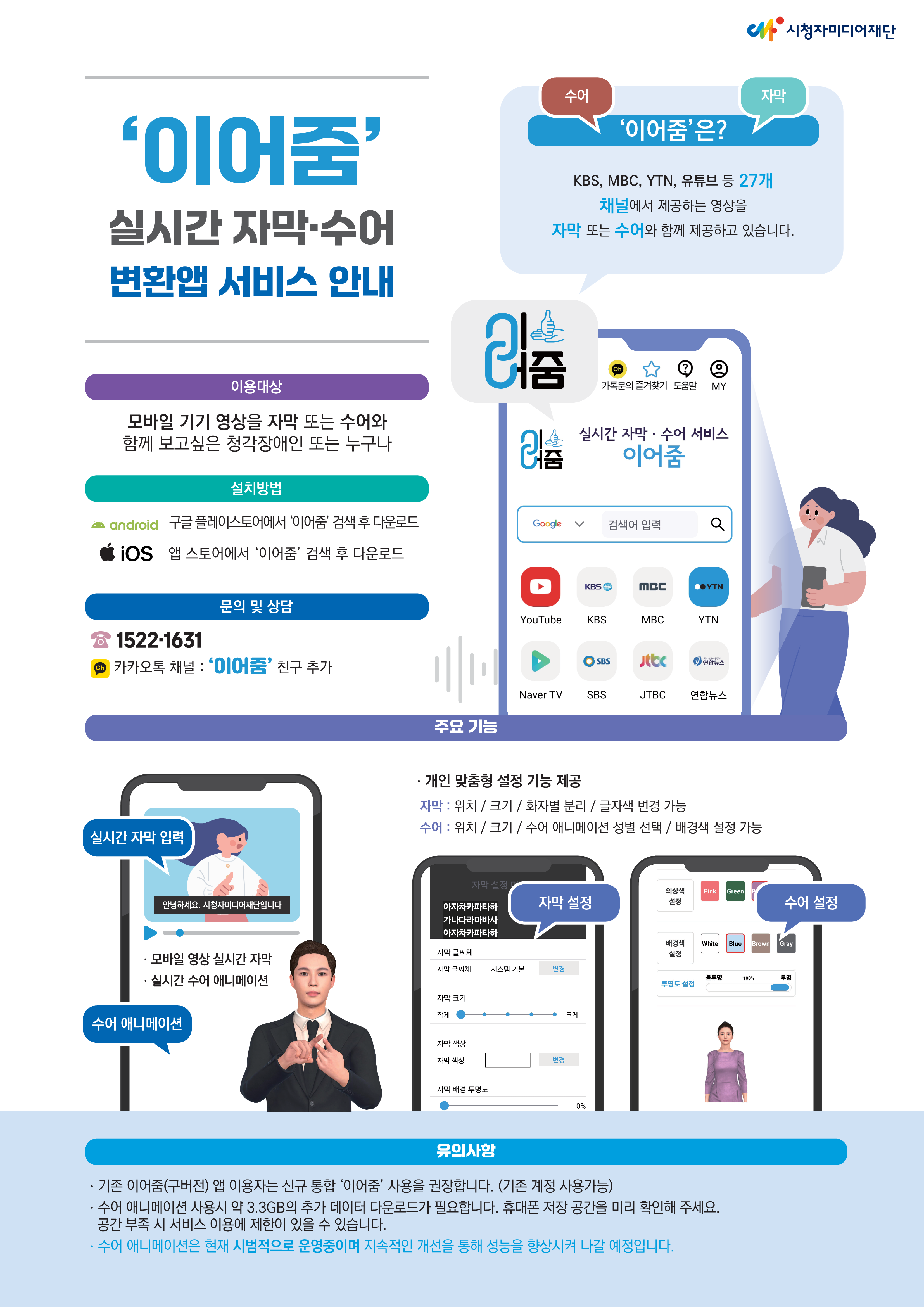 시청자미디어재단은 방송통신위원회 산하 공공기관으로 청각장애인의 모바일 미디어 접근성 향상을 위해 음성-수어-자막 변환앱