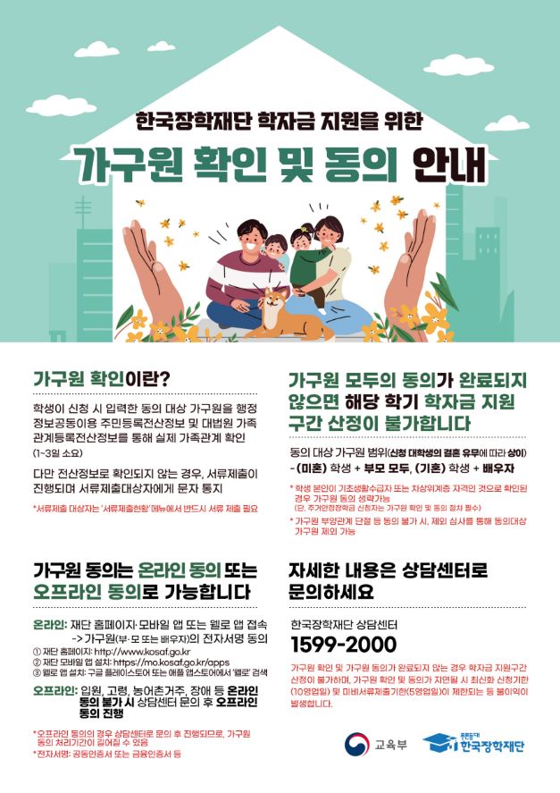 2026학년도 1학기 국가장학금 신청자 중 가구원 정보제공을 다음과 같이 안내드립니다.
