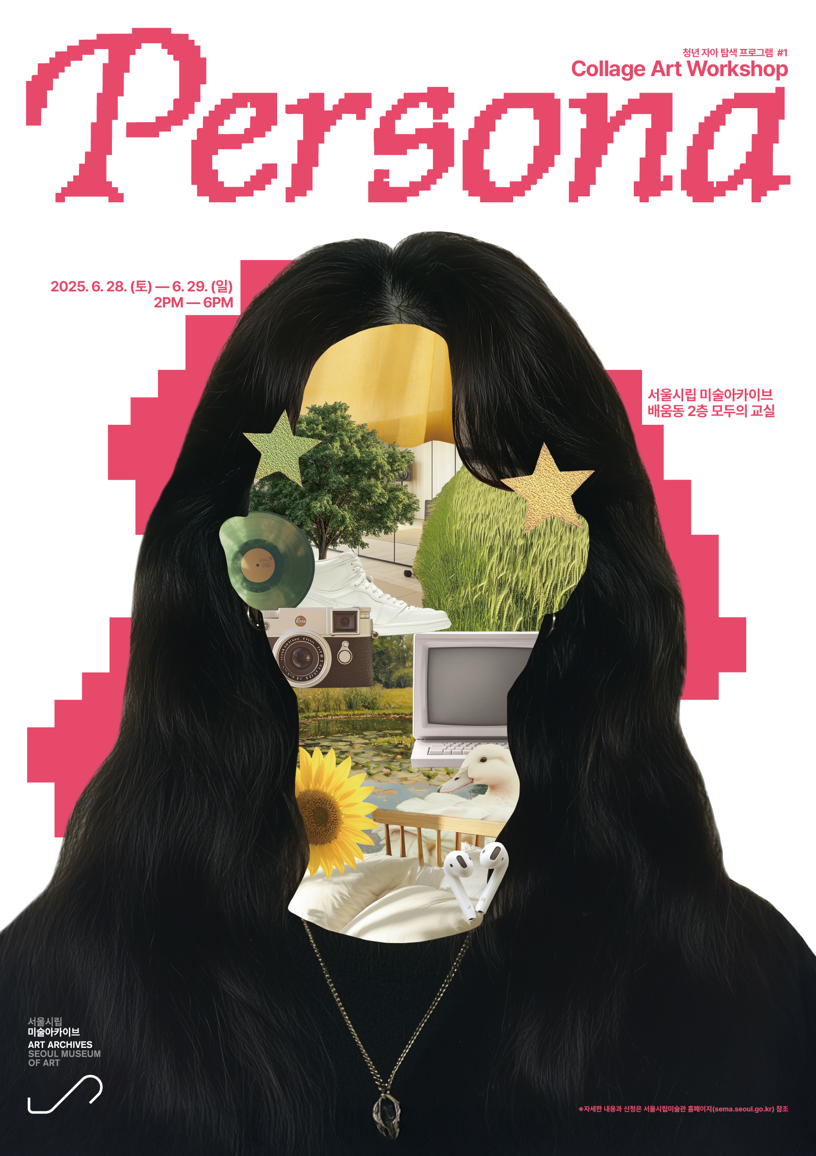 □ <Persona>는 다층적인 자아와 외적 정체성을 탐구하는 가상의 콜라주 아트 워크숍의 포스터 작품으로, 얼굴을 다양한 오브제로 재구성하여 다층적인 정체성을 시각화했다.